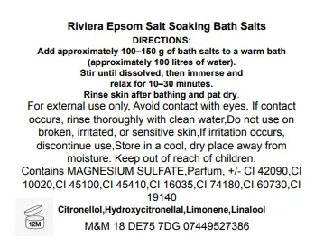 We have combined Epsom Salts with Riviera fragrance which is a bright, uplifting fragrance bursting with tropical energy and summer warmth. It opens with juicy tropical fruits and a fresh, sunny sweetness that instantly feels fun and carefree. As the fragrance develops, creamy floral notes and soft coconut style warmth add depth and smoothness, while a gentle musky base keeps the scent balanced, wearable and irresistibly summery. Perfect for bath, body and home fragrance creations that need a vibrant, feel good and holiday inspired scent.