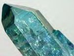 Aqua aura (blue) quartz crystals are clear/cloudy quartz crystals which have been enhanced with pure gold ; the molecules of pure gold adhere to the natural electrical charge which surrounds the quartz crystal, and are not removed by rubbing or scraping.
