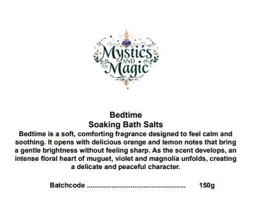 We have combined Dead Sea Salts with Bedtime fragrance which gives you a soft, comforting fragrance designed to feel calm and soothing. It opens with delicious orange and lemon notes that bring a gentle brightness without feeling sharp. As the scent develops, an intense floral heart of muguet, violet and magnolia unfolds, creating a delicate and peaceful character. The fragrance rests on a warm base of sandalwood and sweet vanilla, leaving a smooth, comforting finish that feels relaxing and perfectly suited to evening and sleep inspired creations.