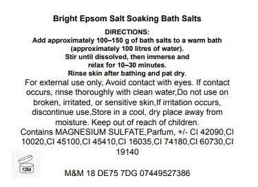 We have combined Epsom Salts with Bright fragrance which is a vibrant, uplifting fragrance with a warm and feel good character. It opens with juicy fruity notes that feel fresh, cheerful and instantly energising. As the fragrance develops, soft florals add balance and smoothness, while a warm creamy base brings depth, comfort and a subtle sweetness that lingers beautifully