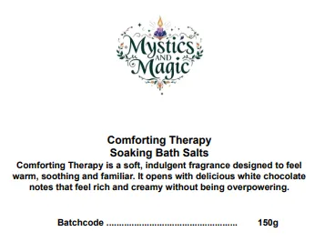 We have combined Dead Sea Salts with our fragrance comforting therapy which is a soft, indulgent fragrance designed to feel warm, soothing and familiar. It opens with delicious white chocolate notes that feel rich and creamy without being overpowering. As the fragrance develops, a heart of sweet, creamy notes adds depth and smoothness, creating a comforting, edible style aroma. The scent rests on a gentle base of soft vanilla, leaving a warm, cosy finish that feels calming and perfect for wellness inspired creations.