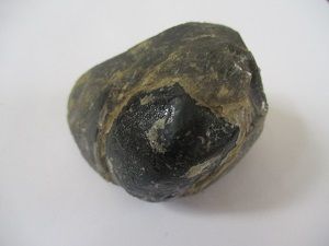 The apache tear, a variety of obsidian, is volcanic glass and is usually found in a vitreous from of black, black/clear, black/Smokey/clear, black/mahogany, and occasionally black/violet, or black/green. The shape is somewhat spherical with conchoidal markings.