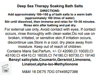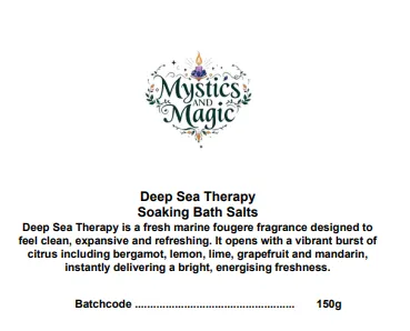 We have combined Dead Sea Salts with the fragrance Deep Sea Therapy which is a fresh marine fougere fragrance designed to feel clean, expansive and refreshing. It opens with a vibrant burst of citrus including bergamot, lemon, lime, grapefruit and mandarin, instantly delivering a bright, energising freshness. Green leaf, green violet, galbanum, lavender and pine blend with hints of melon, apple and cassis, creating a crisp, airy character. The fragrance flows into a fresh floral heart of lily, jasmine, violet and rose, layered with refreshing marine notes. The scent rests on a smooth base of cedarwood, amber, musks, tonka and moss, leaving a clean, balanced finish that feels cool, calm and revitalising.