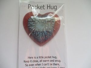 "Here is a little pocket hug, keep it close, all warm and snug.