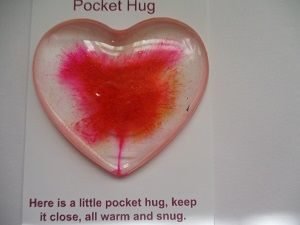 "Here is a little pocket hug, keep it close, all warm and snug.