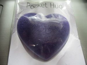 "Here is a little pocket hug, keep it close, all warm and snug.