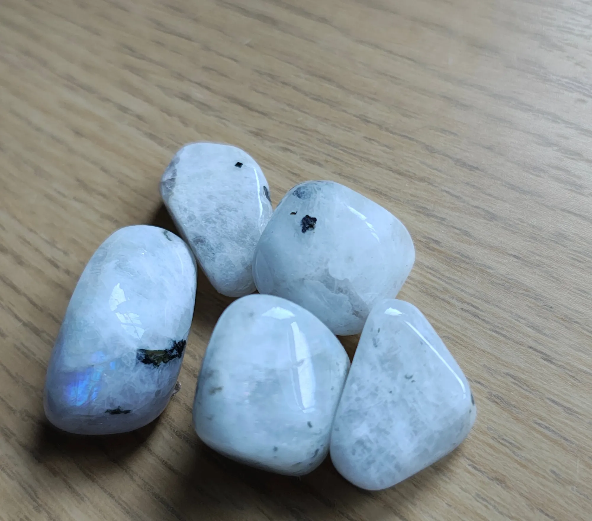 Rainbow moonstone tumbled stones have a soft, luminous beauty that feels almost magical.