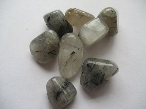Tourmalinated quartz is a type of clear or white quartz crystal that contains inclusions of black tourmaline. Tourmalinated quartz tumblestones are small, polished stones made from this gemstone.